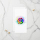 Large, blooming rose with rainbow petals on white background, painted over with splashes of colourful, bright paint. 3d