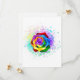 Large, blooming rose with rainbow petals on white background, painted over with splashes of colourful, bright paint. 3d