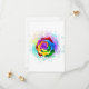Large, blooming rose with rainbow petals on white background, painted over with splashes of colourful, bright paint. 3d
