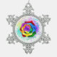 Colourful Rainbow Rose Snowflake Pewter Christmas Ornament