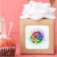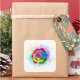 Large, blooming rose with rainbow petals on white background, painted over with splashes of colourful, bright paint. 3d