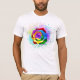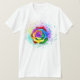 Large, blooming rose with rainbow petals on white background, painted over with splashes of colourful, bright paint. 3d