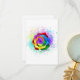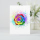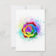 Large, blooming rose with rainbow petals on white background, painted over with splashes of colourful, bright paint. 3d