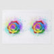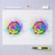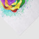 Large, blooming rose with rainbow petals on white background, painted over with splashes of colourful, bright paint. 3d