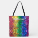 Colourful Rainbow Sequin Print Personalised Name Tote Bag