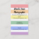 Colourful rainbow stripes for a bright, friendly casual, yet professional, first impression. Templates for contact information on front and back. As shown on the standard white background. Stripes and background colours are fully customisable.