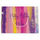 A gift bag with an abstract background design. Vibrant stripes in both bold and pastel colours. Pinks, blues, purples and yellow colours combined with faux gold sparkly glitter layered over top.