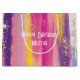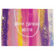 A gift bag with an abstract background design. Vibrant stripes in both bold and pastel colours. Pinks, blues, purples and yellow colours combined with faux gold sparkly glitter layered over top.