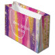Colourful Rainbow Stripes with Faux Gold Glitter Large Gift Bag