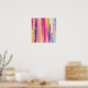 Poster with an abstract background design. Vibrant stripes in both bold and pastel colours. Pinks, blues, purples and yellow colours combined with faux gold sparkly glitter layered over top.