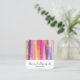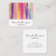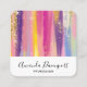 Business cards with an abstract background design. Vibrant stripes in both bold and pastel colours. Pinks, blues, purples and yellow colours combined with faux gold sparkly glitter layered over top.