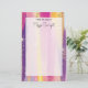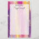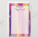Stationery paper with an abstract background design. Vibrant stripes in both bold and pastel colours. Pinks, blues, purples and yellow colours combined with faux gold sparkly glitter layered over top.