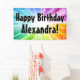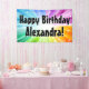 Rainbow of colourful bokeh and rays of light. Blue, purple, orange, yellow and green graphic.  Add your name to this personalised birthday themed banner sign.  Great for a birthday party, any age, for kids or adults. Make it now and order with no minimum.  Great to tell guests where the party is at, and direct them to the correct location.  Easy to customise it online.