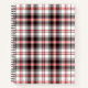 Modern tartan (plaid) spiral notebook in black, white, and red.