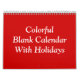 In colourful Blank Calendar With Holidays with whute wire you can find changeable text on front page. United States events and holidays are added too.