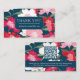 Colourful feminine red illustrated floral pattern blue modern business thank you card with company qr code and editable thank you offer details to customer on the back of the card.