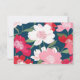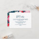Beautiful red floral pattern wedding guest detail card features romantic illustrated flowers on an elegant blue background, and trendy script typography.