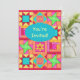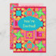 Invite a quilter or quilt lover with this colourful fully customisable quilt invitation. Fully customise on the front and back to add your own words, names and other information. This original quilt art makes a vibrant invitation. Quilt art based on original art features favourite patchwork quilt blocks plus unique blocks form a patchwork quilt design. The vibrant and dynamic colours of orange, yellow, pink, turquoise, red and lime green create a beautiful colour palette. A turquoise teal blue oval is on the front of the card to say "You're Invited" or other words of your choice. Show your love of quilting with these quilt art designs with other quilt art products. Quilt art is original art from fabric and quilt designer Phyllis Dobbs and is in a fabric collection from Quilting Treasures. This art is available on other products and in several colour backgrounds. More products are available in Phyllis' BusinesswithFlair store. Match with coordinating stamps, envelopes, stickers and return address labels.