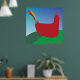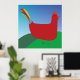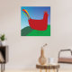 Colourful Red Rooster with Rainbow Tail on Hill Poster