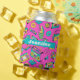 Customisable name can cooler in retro 1980s theme pattern, with bright and colourful vintage items such as cassette players, Rubik's cubes, sweets, scrunchies, etc. in hot pink, turquoise, and yellow colours.
