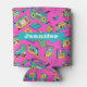 Colourful Retro 80s Girly Neon Pink Pattern Name Can Cooler