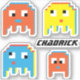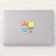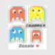 Four bright retron block style monster aliens and your own name or gaming alias graphic stickers. Art and design by www.mylittleeden.com