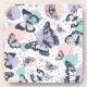 Colourful retro butterflies pattern coaster