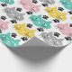 A Fun Retro And Colourful Wrapping Paper of Different Coloured Cat Faces And Black Paws