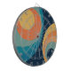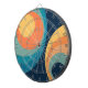 Abstract illustration of colourful retro style circles in yellow, blue, orange and turquoise colours on navy blue background