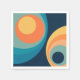 Abstract illustration of colourful retro style circles in yellow, blue, orange and turquoise colours on navy blue background