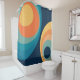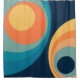 Abstract illustration of colourful retro style circles in yellow, blue, orange and turquoise colours on navy blue background