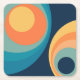 Abstract illustration of colourful retro style circles in yellow, blue, orange and turquoise colours on navy blue background