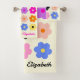 Colourful Retro Daisies BOHO Chic Minimalist Name Bath Towel Set