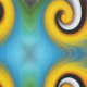 Modern graphic design made of parrot feathers in a delicate, floating look. Beautiful colours in blue, white, yellow and brown - Cool retro design!