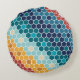 Colourful Retro Floral Mosaic Hexagon Pattern Round Cushion