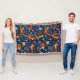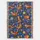 Colourful Retro Foxes And Flowers Pattern Throw Blanket