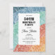 Colourful groovy rainbow with floral pattern backdrop birthday invitations.