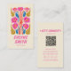 Colourful Retro Hand Drawn QR Code Floral Girly Business Card