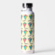 The bottle looks even better in real life. The ice cubes I put in lasts all day! I have my bottle with me all the time. It's summer and having something cold to drink feels amazing. With this bottle I always have something super cold. I have only tried the hot drink once and it lasted a long time as well. The color blue is a navy blue and the white printed on it is vibrant. It printed perfectly. I love my personalized smile water bottle.