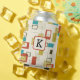 Colourful retro mid-century modern geometric shapes in seamless patterns over light beige backgrounds. Customisable monogram.