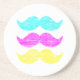 Colourful Retro Moustache Pattern Design Coaster