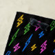 An eighties inspired retro pattern with colourful neon lightning illustrations on a black background. Perfect design for anyone who loves nostalgic 80's look designs, colourful shape illustrations and vintage neon patterns.