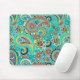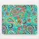Cool retro colourful paisley pattern. Blue-green with red and white accents.