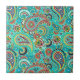 Cool retro colourful paisley pattern. Blue-green with red and white accents.