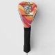 Retro styled golf club head cover with groovy waves in colours of red, orange, and yellow. This golf head cover looks like it has good mood vibes!