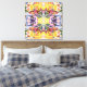 Premium Wrapped Canvas wall hanging decor printed with a Colourful Retro Psychedelic Kaleidoscope Abstract art design four part mirrored image repeating pattern graphic artistic illustration by TheFabricSeal print on demand shop at Zazzle.com #ZazzleMade ©️Original. https://www.zazzle.com/store/thefabricseal