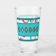 Irregular hoops in colour block shades of yellow, red, blue, purple and turquoise against a white background with the word “cheers” with each letter in a diamond shape gives this design an mid-century modern vibe.
