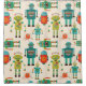 This vibrant image features a fun and colourful pattern of various retro-style robots in different shapes and designs. The playful robots are set against a neutral background, making them stand out. This whimsical design is perfect for children's rooms, tech-themed events, or anyone who loves unique robot illustrations.