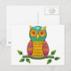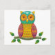 colourful retro style owl design postcard