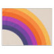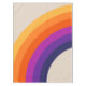 Abstract illustration of retro style rainbow design in yellow, purple, blue, and orange colours on beige background
